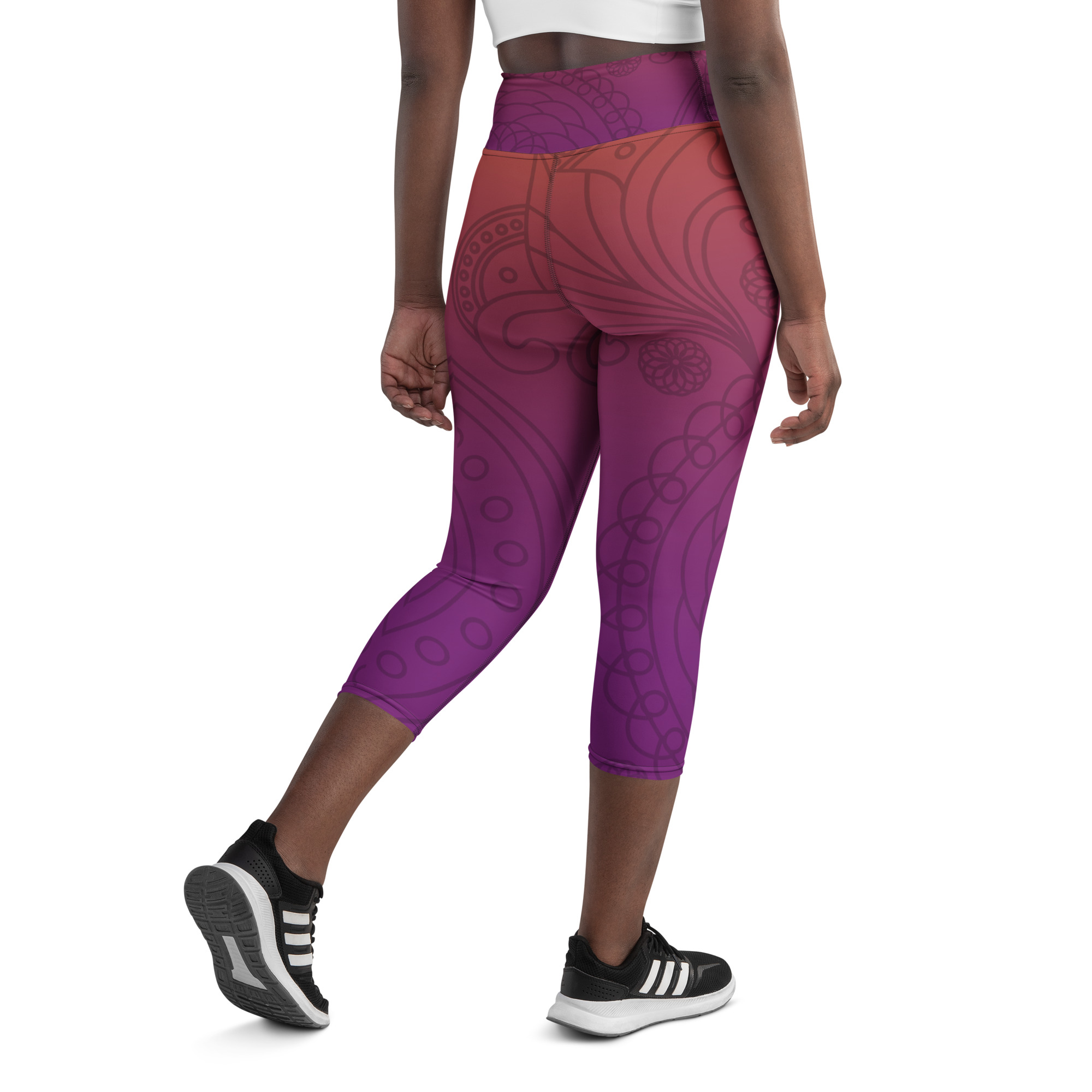 These yoga capri leggings with a high, elastic waistband are the perfect choice for yoga, the gym, or simply a comfortable evening at home.